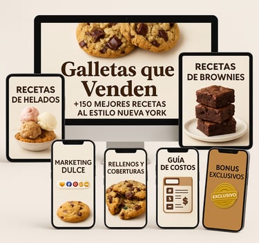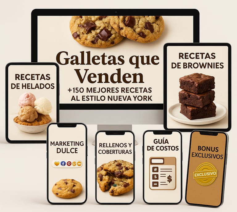 Aprende a preparar, decorar y vender cookies gourmet al estilo Nueva York — con más de 150 recetas probadas, técnicas profesionales y estrategias reales para generar ingresos desde tu cocina.